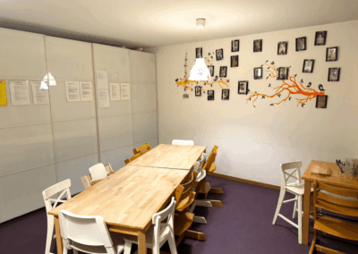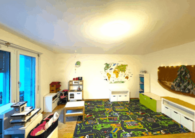 Wir haben Plätze für maximal 27 Kinder pro Tag. Die Kinder treffen sich dort, um gemeinsam in der Gruppe zu spielen, basteln, singen und an vielen weiteren Aktivitätsangeboten drinnen oder draussen teilzunehmen.